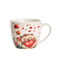 Skodelica z motivom ježa, ki v svojih tačkah drži veliko rdeče srce, simbolizira toplino, ljubezen in pozornost. Ta igriv in romantičen dizajn naredi lonček idealnega za skupne trenutke ob zajtrku, popoldanski čaj ali večerno sprostitev s skodelico kave ali kakava.